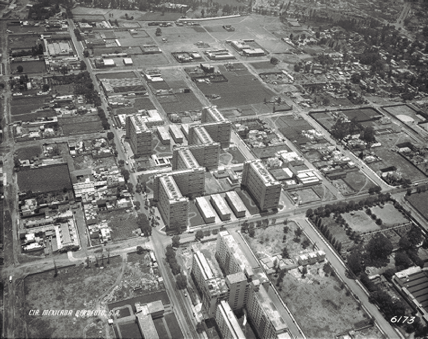 Fig. 1/ Centro Urbano Presidente Miguel Alemán, vista aérea 1949.