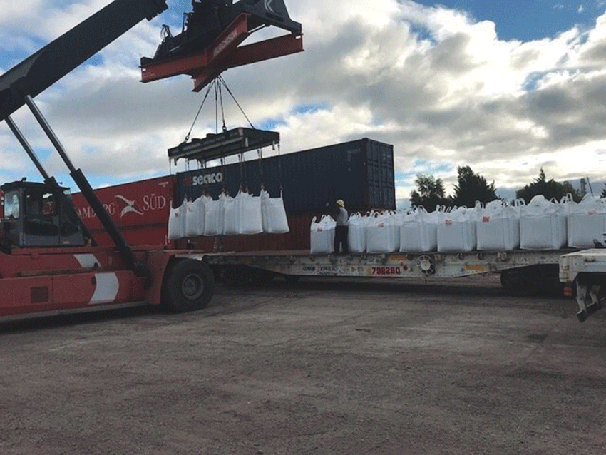El puerto de Bahía Blanca es una de las puertas de entrada de este producto al país. La evolución en la importación del mismo ha crecido exponencialmente desde 2017. La arena, procedente de países como China y Brasil, arriba al puerto en bolsones dispuestos dentro de contenedores. Uno de los sitios de almacenamiento es el Área Operativa 1 de Coronel Rosales, perteneciente a la Subzona Franca. Luego, esos bolsones son cargados en camiones que se destinan a la región Vaca Muerta (Fig. 7). La logística de este insumo resulta uno de los eslabones centrales para reducir los costos de la extracción de hidrocarburos no convencionales.