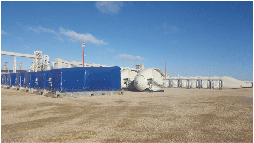 Fig. 8/ Góndolas, hubs y aspas en el Área Operativa 2 del Puerto Galván (Subzona Franca).