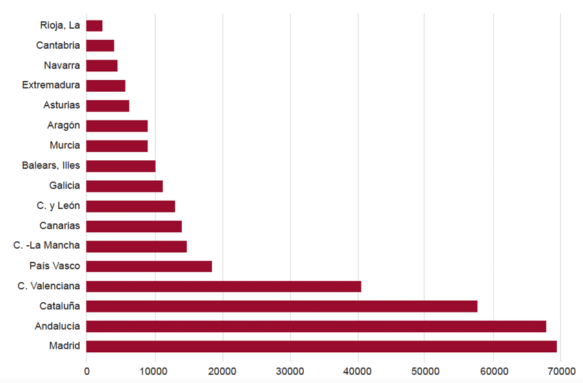 En el caso de la Comunidad de Madrid destaca el fuerte empuje inicial de la recuperación en dicha autonomía durante las fases iniciales de la recuperación, pues Madrid llegó a suponer en 2015 el 25,9% de todas las viviendas iniciadas en España. En Andalucía destaca el fuerte “tirón” registrado por la provincia de Málaga, donde se iniciaron 9.813 viviendas en 2019.