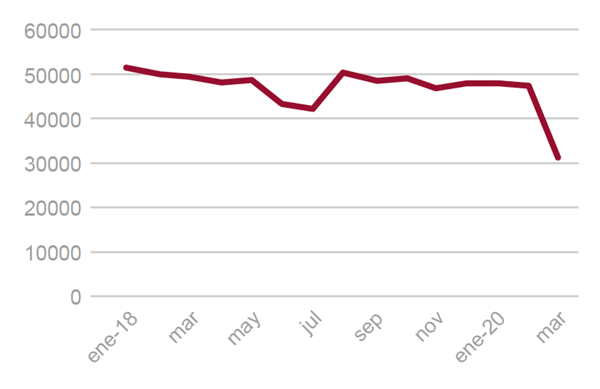 En España, el primer indicio de la fuerte dimensión de la crisis derivada de la pandemia vino de la mano de la afiliación a la Seguridad Social. El número de afiliados retrocedió en marzo de 2020 en 834.000 y en abril lo hizo en 49.074. En mayo se produjo un retorno a cifras positivas de afiliados por una cuantía de 187.814. Entre el 12 de marzo y el 31 de mayo, periodo de unos dos meses y medio, el número de afiliados descendió en 760.082.