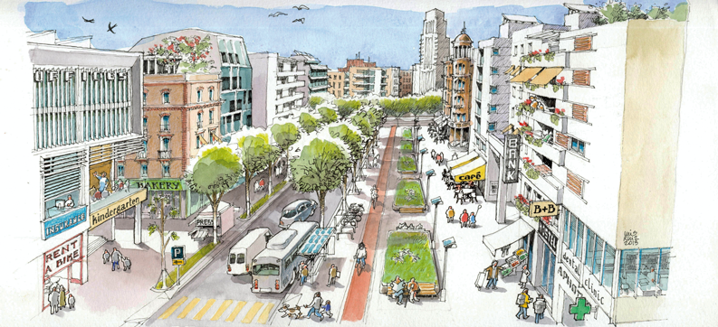 El proceso de cambio estaba articulado en diversas acciones cuyo elemento común era el aumento de la proximidad a recorridos diarios y el rediseño de las amplias secciones viarias actuales:
