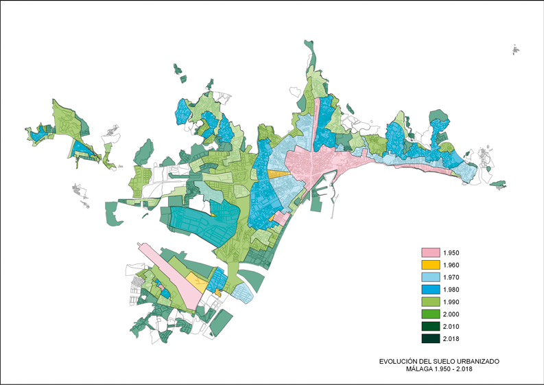 Fig. 8/ Evolución del suelo urbanizado en Málaga 1950-2018.