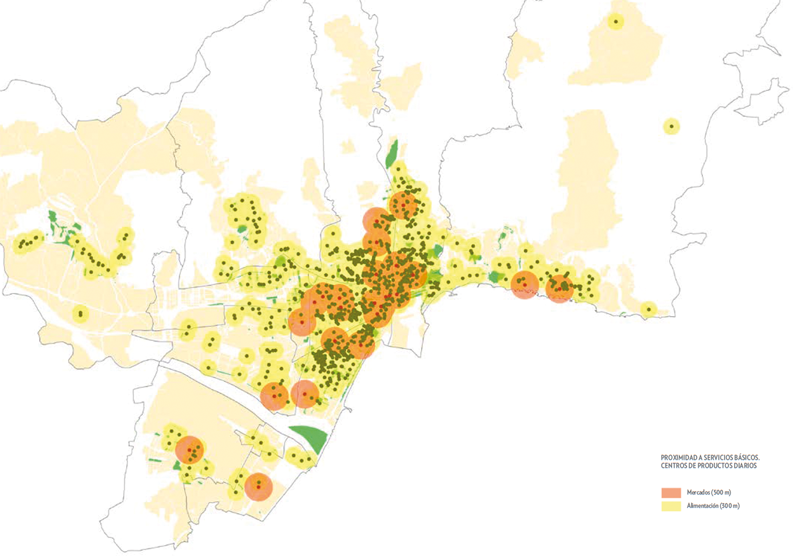 Fig. 15/ Proximidad de los servicios básicos de productos diarios en Málaga 2018.