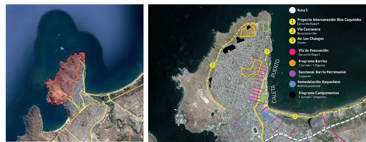 Reconociendo estos elementos como potenciales, así como el alto nivel de deterioro urbano habitacional, con el objeto de consolidar el territorio a través de un Plan Maestro Integral, la propuesta plantea la creación de infraestructura, equipamiento y vivienda. Articulando las diversas actuaciones, a través de la consolidación de Av. Los Changos como elemento vertebrador, se plantea el ordenamiento y densificación habitacional, lo que ha demandado un largo trabajo mancomunado que responda a los requerimientos de los propios habitantes, el municipio, los distintos programas del MINVU y diversos actores como Ministerio de Obras Públicas, la Armada, etc.