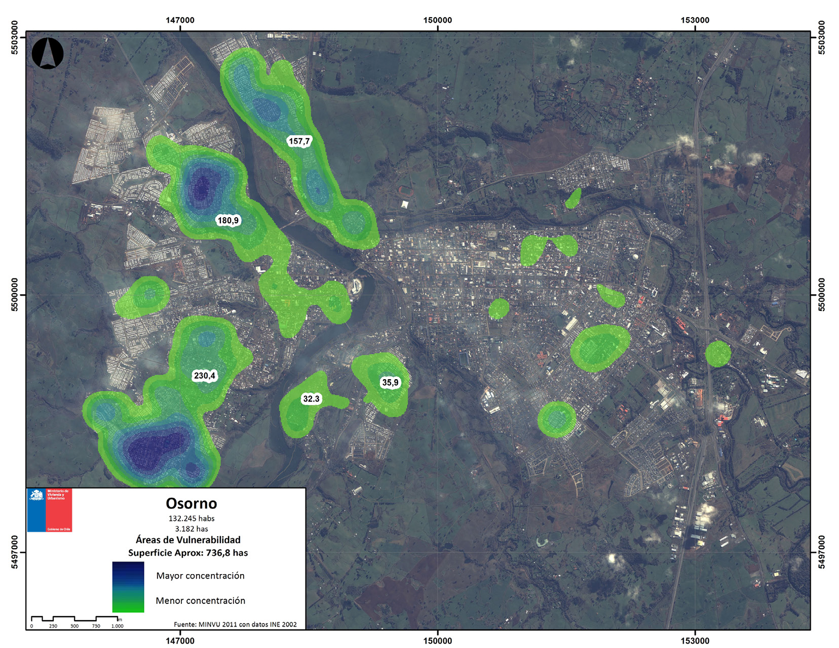 Fig. 2/ Georreferenciación inversiones y programas en la ‘zona prioritaria’ de Osorno.