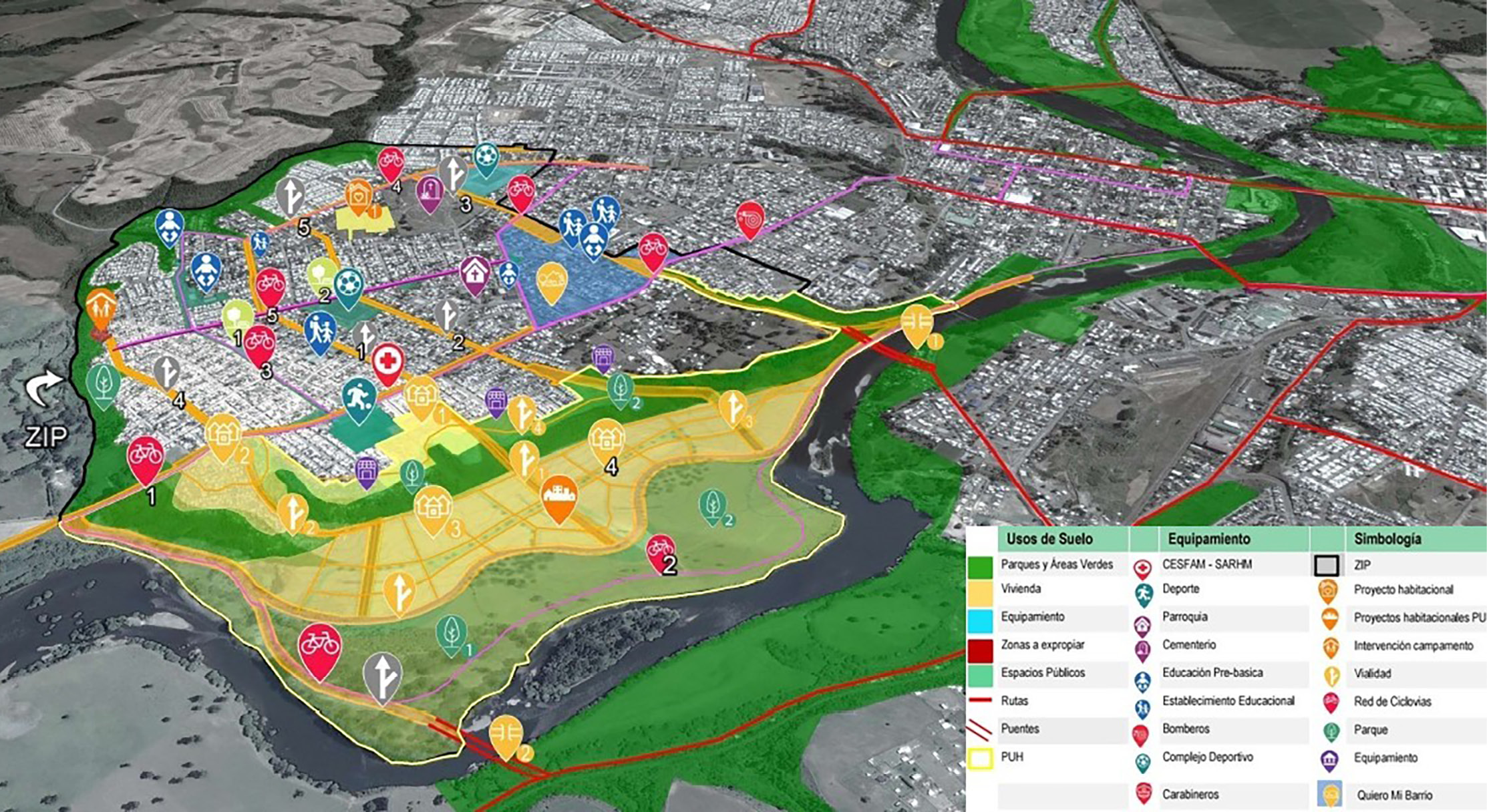A partir de estas problemáticas, la propuesta ZIP busca constituirse como un proyecto que entregue continuidad urbana a la regeneración integral del área, a través de nuevas intervenciones habitacionales, creando nuevos espacios públicos, áreas verdes, parques, plazas y equipamientos apoyados con proyectos de conectividad interna.