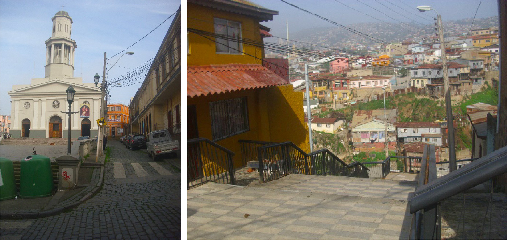 La relación entre el plan y el cerro, resulta en una temática continua de los relatos. Mientras en el plan se desarrolla la vida en tránsito (compras, trabajo, escuela, etc.) en los cerros están las casas donde habitan y duermen. Así en el barrio puerto, acceder a uno u otro solo es posible a través de una multiplicidad de escaleras y pasajes, como un laberinto (Fig. 5).