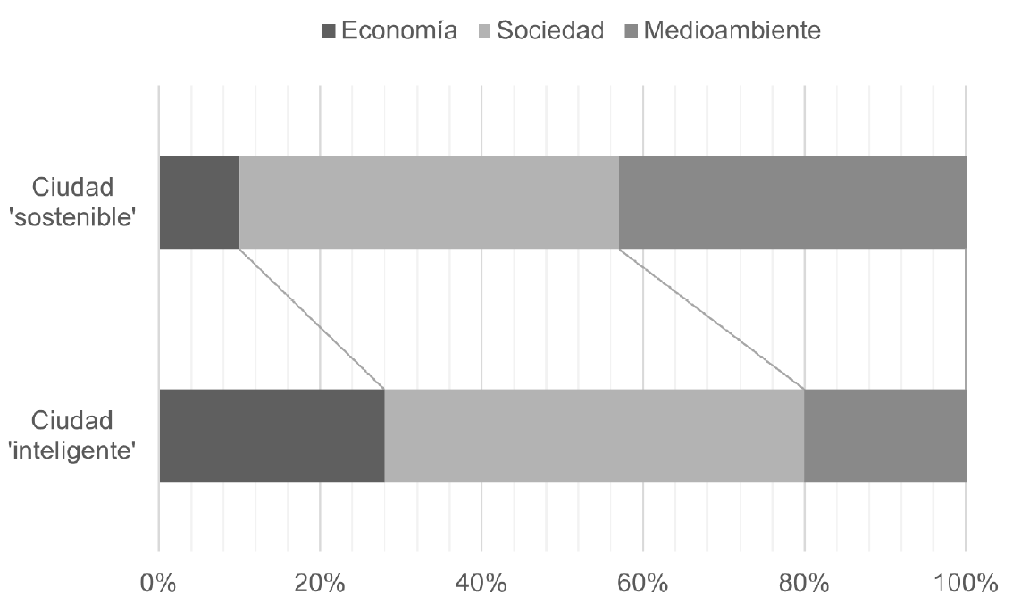 Fig. 2/ Relación porcentual entre indicadores de sostenibilidad, en ciudades sostenibles e inteligentes.