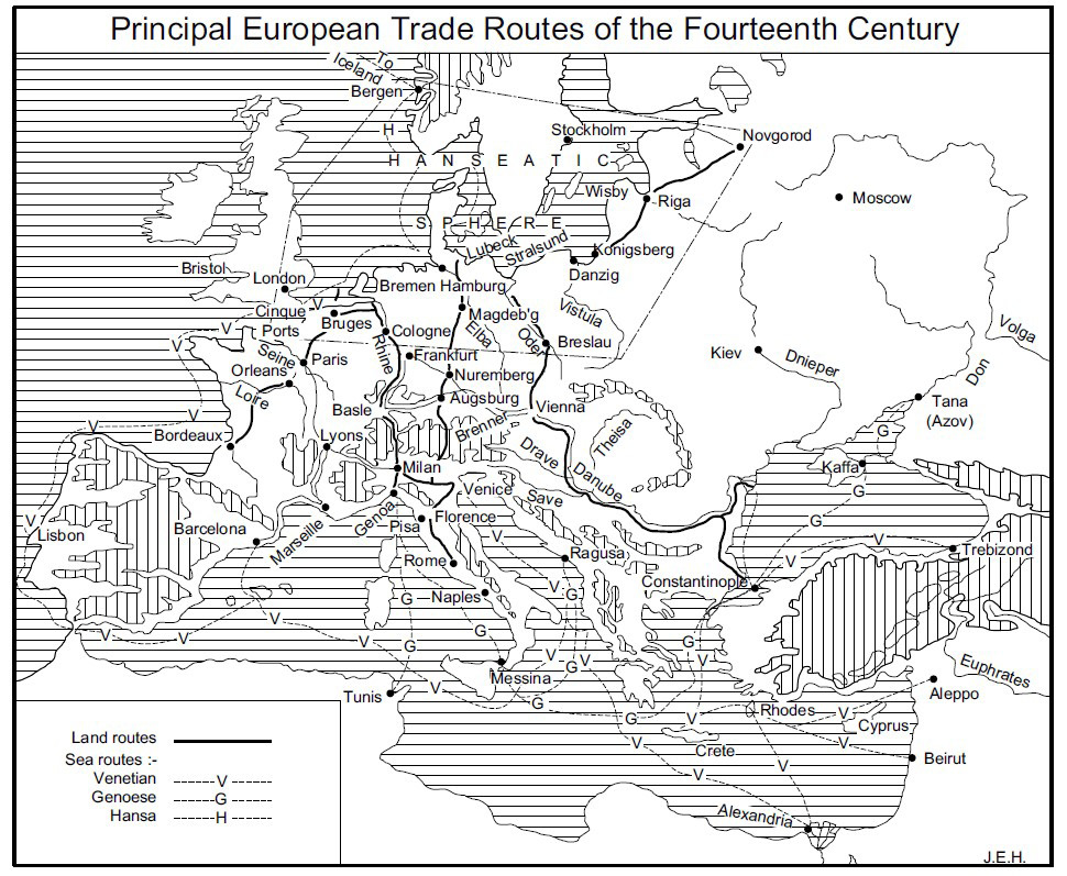 Fig. 3/ Principales rutas del comercio europeo en el s. XIV