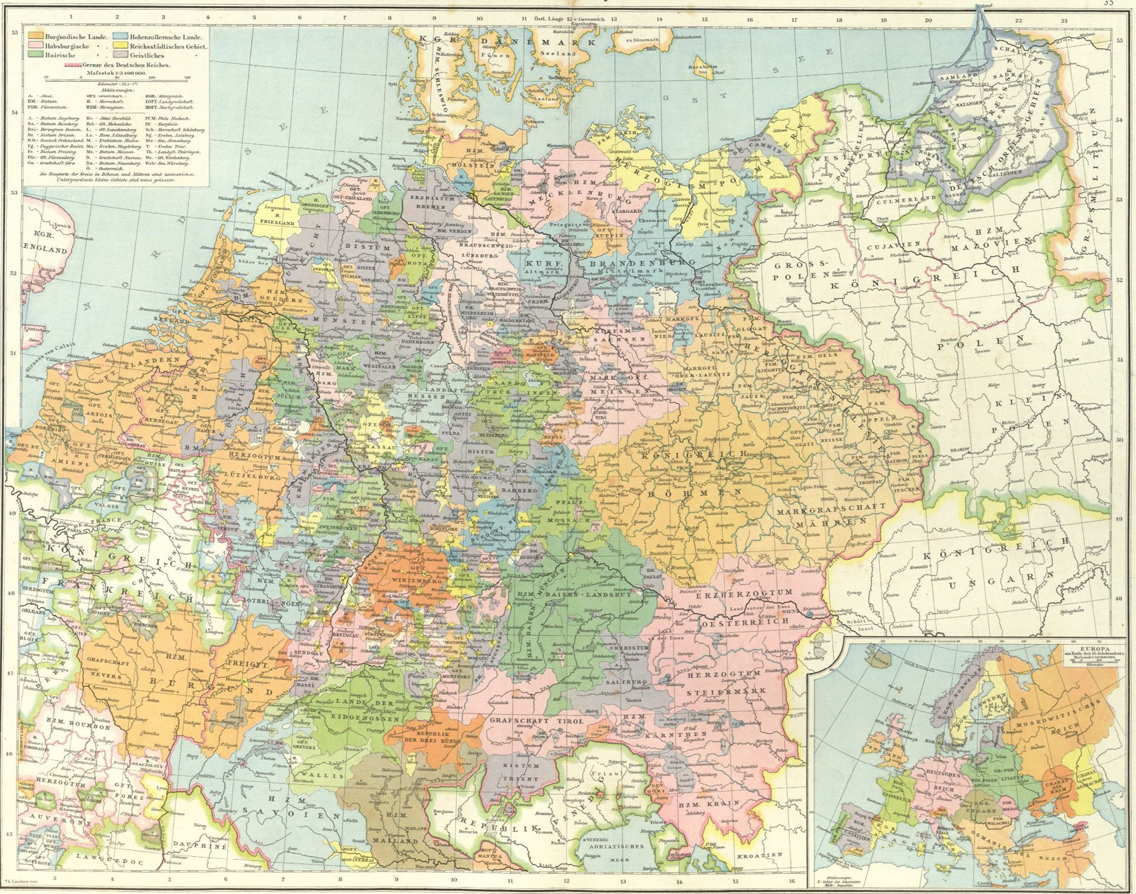 La dispersión de la riqueza económica junto a la elevada fragmentación geopolítica (Tilly, 1975, p. 15; Hale, 1998, p. 14)5 hicieron que los Estados, a la hora de movilizar recursos internos para afrontar con éxito los desafíos externos, tuviesen que contar con el consentimiento de sus gobernados. Esto implicaba el establecimiento de negociaciones con diferentes señores locales y con las oligarquías urbanas, de lo que se derivaban concesiones que los monarcas se veían obligados a hacer en el terreno político. De hecho, la representación medieval, que está en el origen del sistema parlamentario moderno, tiene unos orígenes militares y constituye un antecedente del gobierno representativo por medio del “Ständestaat” (Bisson, 1966; Hintze, 1968, pp. 79-101; Poggi, 1978, pp. 42-51; Carretero, 1988). Así, las necesidades financieras de la corona para costear sus campañas militares exigían el apoyo de las élites locales, lo que conllevaba la limitación del poder del monarca mediante la realización de concesiones políticas (Downing, 1992; Hui, 2011). Un claro ejemplo de Ständestaat, así como de fragmentación política, es el de Alemania, donde coexistían una variada cantidad de diferentes unidades políticas más o menos independientes, tal y como puede observarse en la Fig. 5.