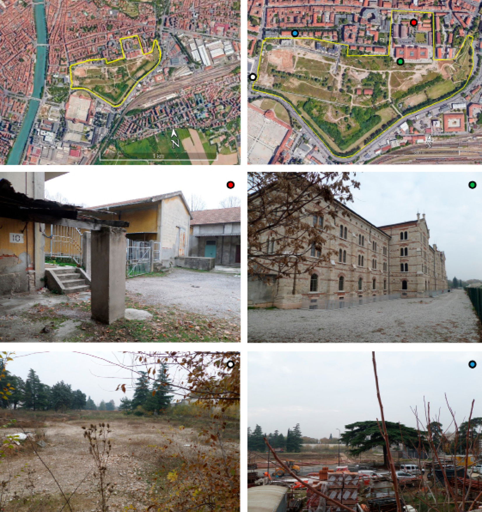 Después de su abandono en 2001, el área queda en mano de los militares: en 2005 se incluye en el D.M. 28/02/2005 para entregarse a la Agencia del Dominio Público (Senato della Repubblica, 2005: 8251), previsión confirmada por el D.M. 27/02/2007. Solamente en 2010 la propiedad se transfiere a la Agencia, valorándose 12 millones de euros. En 2013 la administración local envía formalmente la solicitud para transferir la propiedad a través del artículo 56 bis del D.L. n. 69/2013. No obstante, la Prefectura evalúa la posibilidad de realizar un centro de recepción para migrantes, siendo esta previsión en contra de los planes del Ayuntamiento, que se opone a este escenario por la necesidad de una notable inversión para poder acoger los migrantes y evitar que el antiguo cuartel se transforme en un gueto. De hecho, en octubre de 2015 se modifica el Plan de Ordenación local destinando el antiguo cuartel militar a un mix de usos para realizar las nuevas sedes del Departamento de Bomberos, Hacienda40 y Protección Civil, espacios para actividades deportivas, gimnasio, aparcamientos, servicios comerciales y actividades sociales. El Ayuntamiento toma posesión del área a finales de noviembre de 2015 y, gracias al apoyo de la Agencia del Dominio Público, la Administración local encomienda la elaboración de un estudio de viabilidad del área a la sociedad de ingeniería “Abacus srl”41.
