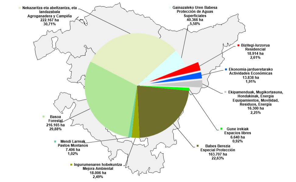 Las DOT se hacen eco de la importancia de promover el reconocimiento social de la actividad agraria no sólo como productora de alimentos, sino también como elemento de protección y regeneración medioambiental, de preservación del paisaje y de la biodiversidad, de la gestión equilibrada del territorio, de la conservación del medio rural y del patrimonio cultural vasco y de la gestión sostenible de los recursos.
