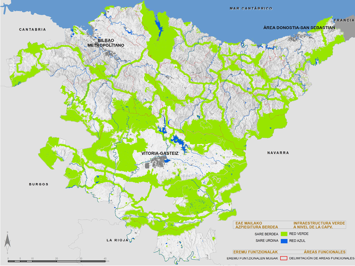Las DOT reconocen la insuficiencia del planeamiento municipal para acometer los grandes temas de estructuración territorial, pero también las limitaciones de la escala global del conjunto de la CAPV. De ahí que cobre especial relevancia la escala territorial intermedia, la correspondiente a las áreas funcionales, para lograr el equilibrio y la complementariedad entre los territorios.