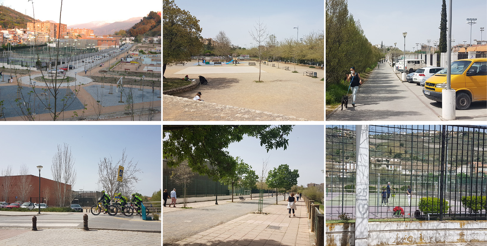 Desde los presupuestos enunciados, el estudio de lo público implica considerar la relación indisociable que existe entre el observable y la metodología. Así, la ciudad de Granada ejemplifica las capitales de provincia españolas de desarrollo urbanístico más tardío y desprovistas de un plan de ensanche, sin grandes crecimientos hasta el último cuarto del siglo XX. Hasta su Plan General de Ordenación Urbana (PGOU) de 1985, Granada conformó los tejidos urbanos periféricos mediante episodios autónomos que coexistían con estructuras preexistentes de base agraria (carreteras suburbanas, propiedades eclesiásticas y militares, etc.). La investigación se centra en su Distrito Sur, uno de estos tejidos conformado paulatinamente9. Se apuesta por una aproximación multiescalar, lo que permite una doble lectura desde la planificación y el proyecto urbano.