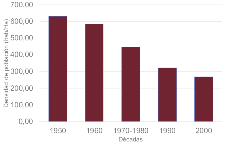 Para la determinación de la densidad se utiliza el número de viviendas y el número de habitantes por unidad de superficie (García, 2016) y se desestima, dados los citados objetivos de la presente investigación, aquellos que miden la compacidad, es decir, el porcentaje de superficie del terreno ocupada por la edificación respecto al suelo urbano o construido (Rueda, 2012; López de Lucio, 2007; Fariña & Naredo, 2010; Ministerio de Medio Ambiente y medio rural y marino y ministerio de fomento, 2010; Ministerio de agricultura, alimentación y Medio Ambiente, 2012; Goerlich & Cantarino, 2012; García 2016). Por tanto, la elección de estas unidades se aleja de la mayor escala de trabajo de estudios urbanos recientes para el cálculo de la densidad neta (Goerlich & Cantarino, 2012; García, 2016; Reig & al., 2016; Olazabal & Bellet, 2019) dados dichos objetivos de la presente investigación.