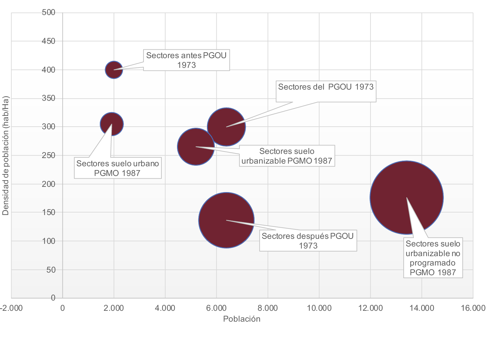 En general, los valores de densidades poblacionales a la baja son un fenómeno común y tendente que de manera generalizada se está produciendo en España a través de la aplicación de la legislación urbanística y el planeamiento actual (Moliní & Salgado, 2010; Lamela, Moliní & Salgado, 2011). Las densidades poblacionales actuales se alejan progresivamente de las densidades recomendadas para garantizar una masa social crítica que permita condiciones de mínima de urbanidad. Un ejemplo de ello son las más de 75 viviendas por hectárea y las 80 a 100 viviendas por hectárea que se recomiendan a través del Libro Verde de Sostenibilidad Urbana y Local y del Sistema de Indicadores y condicionantes para ciudades grandes y medianas del Ministerio de Medio Ambiente. En este sentido, la densidad poblacional mínima y cercana a las propuestas de 250-300 habitantes por hectárea se erige como valor mínimo para las mayores posibilidades de vida e interacción social a partir de la revisión de la literatura. En el caso de Alicante, el resultado de la propuesta de las densidades en el planeamiento urbanístico a través de los sectores urbanísticos dentro, o al margen, de los planes generales es el de la progresiva pérdida de densidad poblacional (Fig.1).