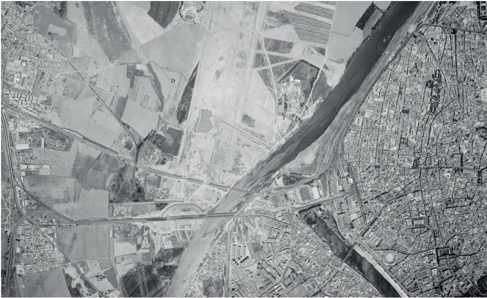 El valor patrimonial y paisajístico del meandro de San Jerónimo fue defendido en los más diversos foros (Mendoza & Ruesga, 1979) y, finalmente, en 1977 el Ayuntamiento solicitó que se mantuviera y un tiempo después se definió una solución técnica que atendía la petición municipal. La contestación ciudadana había servido para evitar que desapareciera un tramo del cauce histórico del río y para detener —al menos momentáneamente— la urbanización de los terrenos sobre los que luego se emplazaría la Exposición Universal de 1992. Y es que su carácter público sirvió a la Administración central para zanjar el debate local sobre la viabilidad de un evento de esa naturaleza en una ciudad como Sevilla y sobre el modelo más idóneo para su localización. Pero en los años setenta esta cuestión aún no se había planteado; entonces los temas objeto de debate eran otros.