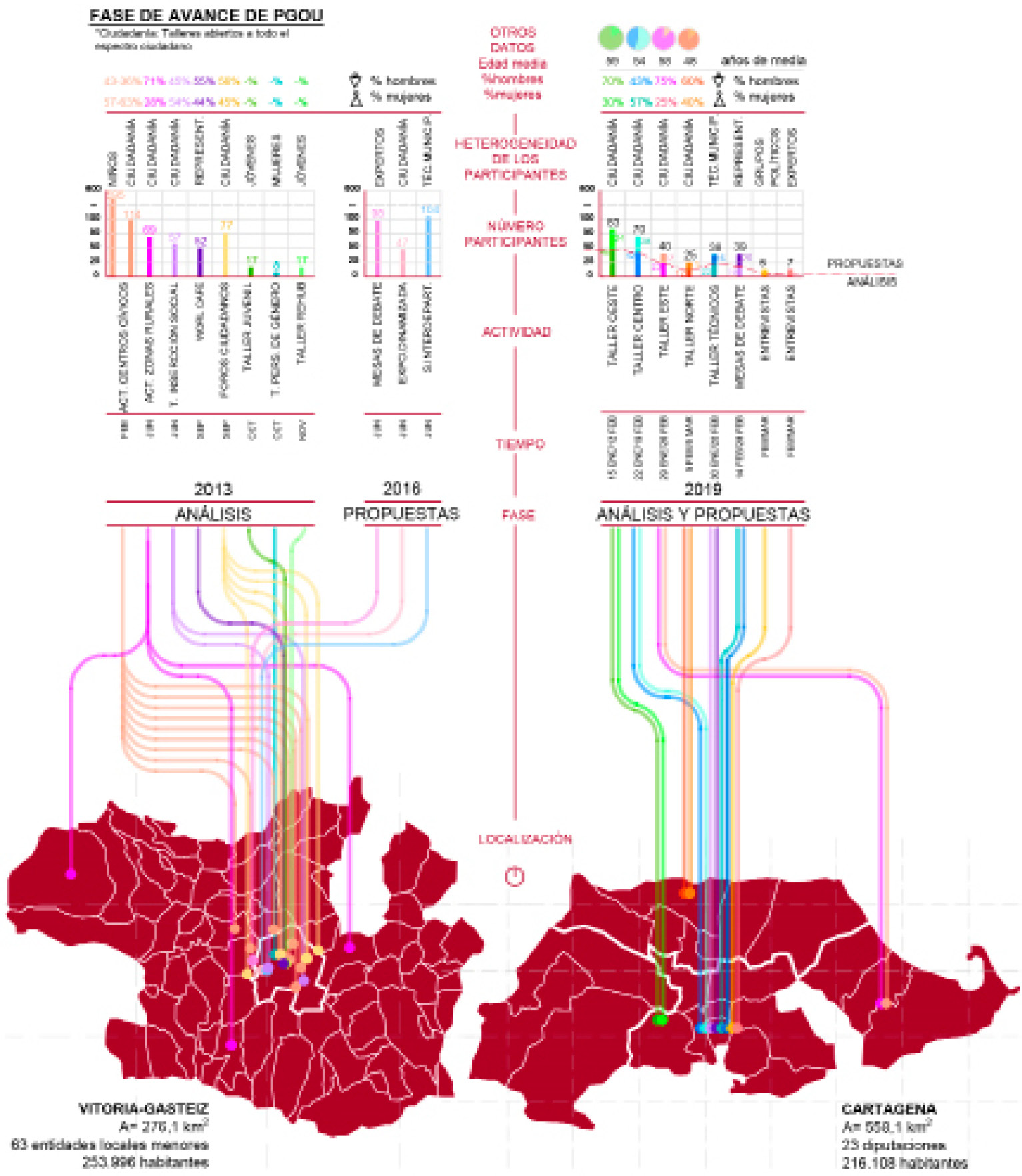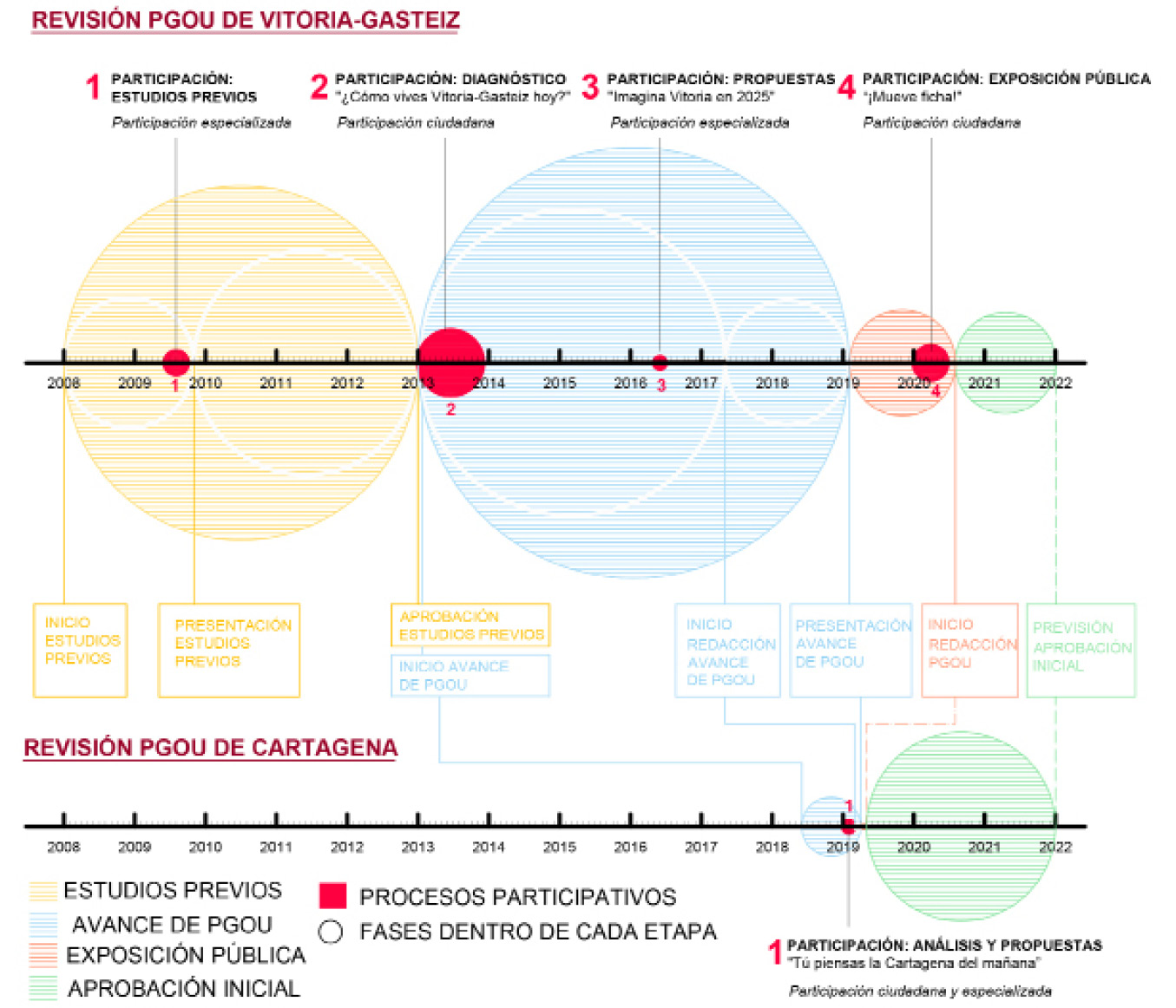En Vitoria-Gasteiz, en esta misma fase y a diferencia de Cartagena, la Oficina de Revisión del PGOU realizó un proceso participativo para contrastar con la ciudadanía el resultado del documento presentado.