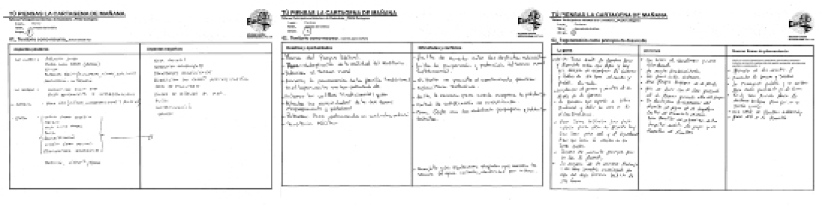 Fig. 5/ Ejemplos de distintas fichas completadas por un subgrupo de participantes de los talleres ciudadanos.