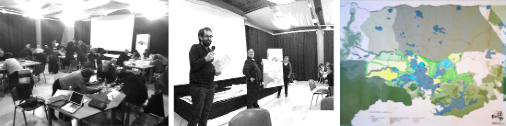 Las siguientes tareas consistían en reflexionar sobre la regeneración como principio de desarrollo, concretando lugares que considerasen prioritarios o susceptibles de ser regenerados, así como acciones para lograrlo y luego, relacionar esas acciones con los enfoques de planeamiento anotados en el borrador del Avance. Para finalizar, un portavoz por subgrupo hacía una puesta en común de las premisas adoptadas en cada mesa de trabajo. Fue interesante comprobar que en cada taller había subgrupos