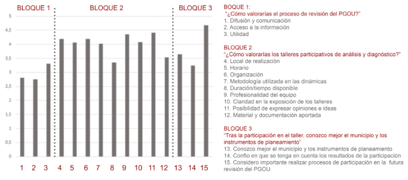 La legislación urbanística únicamente prevé involucrar a los ciudadanos en periodos reglados de información pública donde pueden presentar alegaciones, sugerencias, quejas y propuestas de cara a perfeccionar el documento final. Sin embargo, este estudio refleja el compromiso de sus gobiernos municipales de hacerles partícipes también antes y durante la confección del PGOU gracias a una participación suplementaria a la estrictamente exigida por ley. Estos no son casos aislados en España, aunque el complejo proceso de tramitación y aprobación de un PGOU, que ronda los 10 años de media, reduce la efectividad de la participación por los grandes cambios que pueden ocurrir durante ese tiempo. La simplificación administrativa ayudaría a introducir mayor participación por ley en la redacción del planeamiento y dotarle de más legitimidad sin que significara una demora en su implantación.
