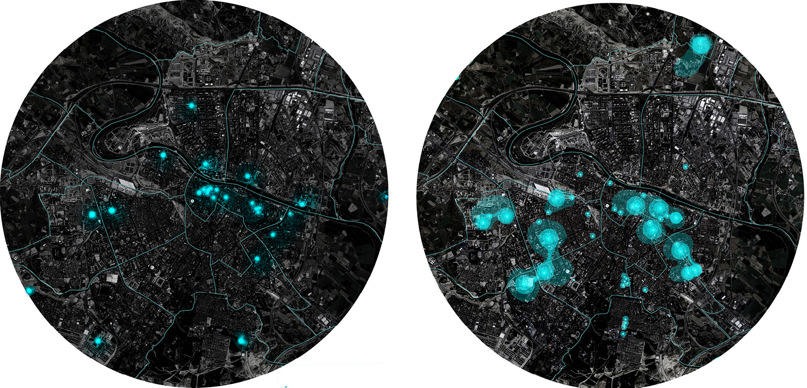 Nos encontramos, por tanto, en una coyuntura que muestra una ciudad que se activa entre los tiempos muertos propiciados por las crisis, entre el momento de lo planificado y el de su ejecución. Este tiempo de espera, el ya consolidado meanwhile, ha permitido flexibilizar el planeamiento urbano a través de la eclosión de usos temporales muchas veces desregulados. La reprogramación de la ciudad a través de los vacíos (físicos y legales) propicia un nuevo tipo de urbanismo a tiempo real, una “conectividad urbana bajo demanda” (Ferreri, 2015) basada en la movilización, activación y conexión que escapa al horizonte regulador y limitador. Todo ello arroja una lectura de la ciudad en base a un biorritmo urbano en el que la ciudad monorrítmica puede ser interrumpida temporalmente por otros ritmos derivados de la diversidad y de la variación de usos (Fig. 2).