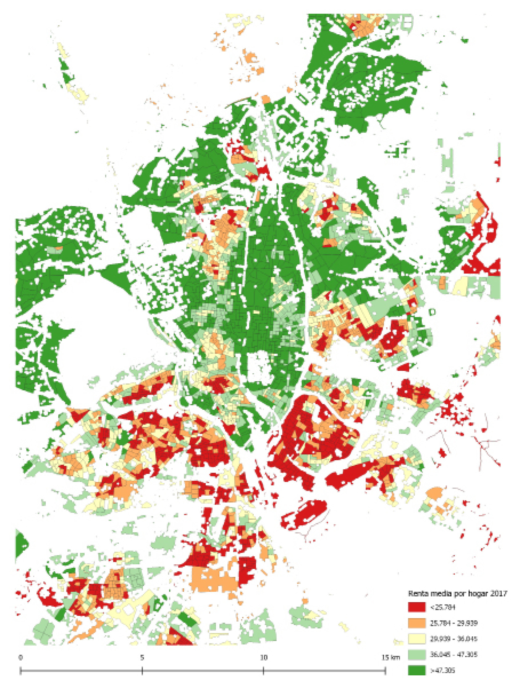 Fig. 6/ Plano que muestra la renta media por hogar en Madrid 2017