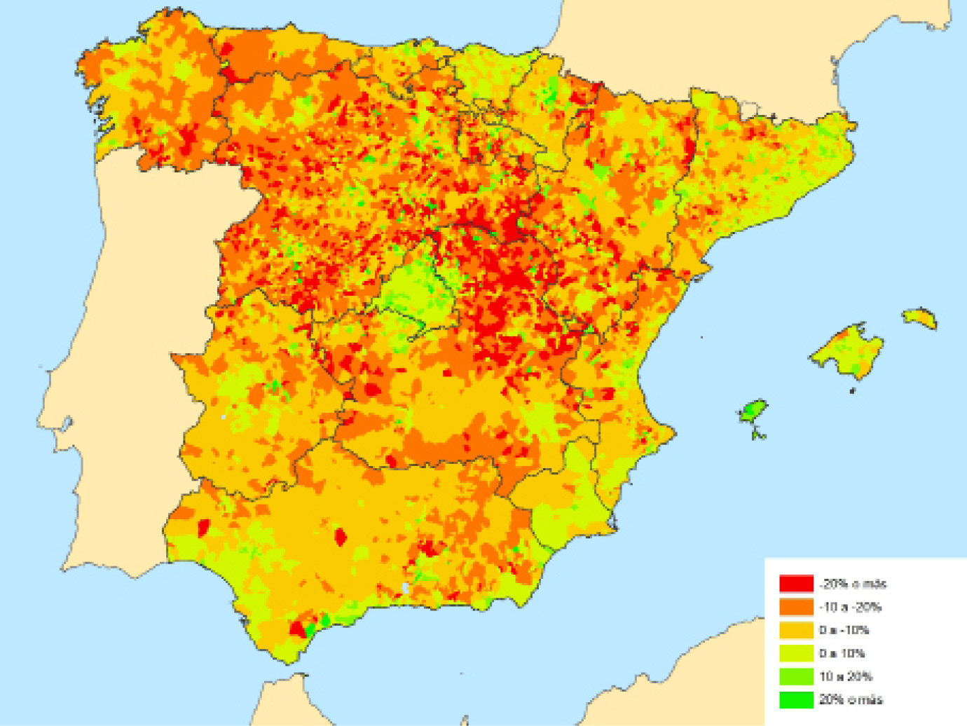 Este marco permite interpretar las transformaciones territoriales registradas en el cambio de siglo; tanto la jerarquía y desigualdad en el dinamismo espacial de las áreas urbanas como el devenir de los entornos rurales son expresión de los cambios en el modelo social y productivo. Por otro lado, en sentido inverso, las relaciones de producción contemporáneas definidas por los procesos globales modelan la organización del territorio, en particular las tendencias de reestructuración y dispersión reciente de las áreas urbanas, así como la pérdida de actividades, despoblación y abandono de algunas áreas rurales, a la vez que se multiplican los desarrollos del turismo, de la segunda residencia, o reemerge la vivienda principal asociada a las necesidades de determinados centros no muy alejados.