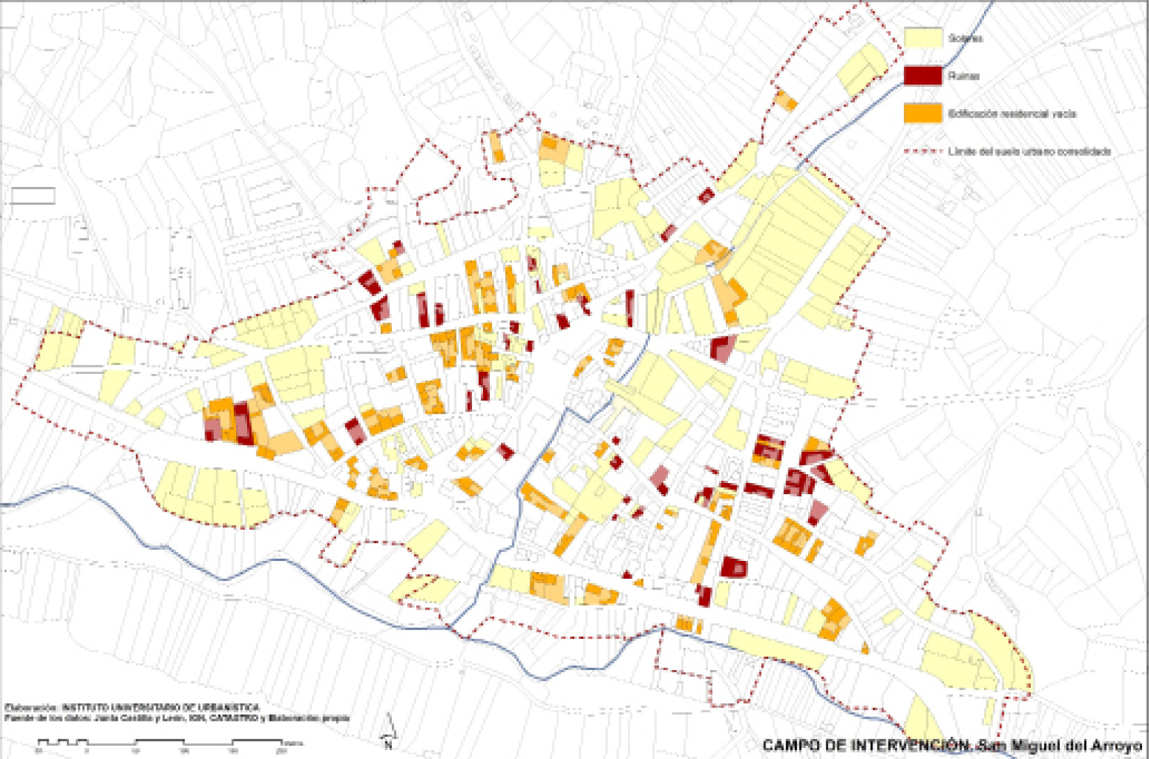 Fig. 11/ En un municipio pequeño, como San Miguel del Arroyo (Valladolid), el 60% del casco urbano lo componen viviendas vacías, solares (con un total de 12,8 ha) y ruinas.