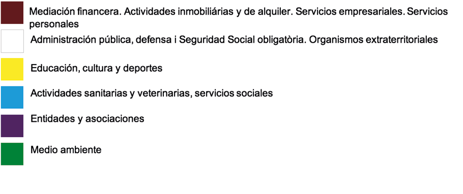 Identifica grandes sectores de personas jurídicas por el color.