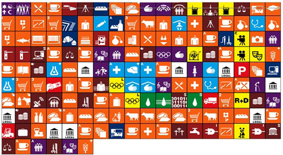 Fig 4/ Iconos representativos de cada una de las actividades urbanas del área seleccionada conformando un mensaje.