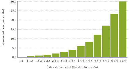 La medida de la complejidad urbana da idea de la información organizada en el territorio y en el tiempo. La organización en las ciudades viene de la mano de las actividades económicas (incluidas las generadas por los trabajadores autónomos), institucionales y asociativas y su diversidad. Buena parte de las organizaciones urbanas son calificadas como personas jurídicas3.