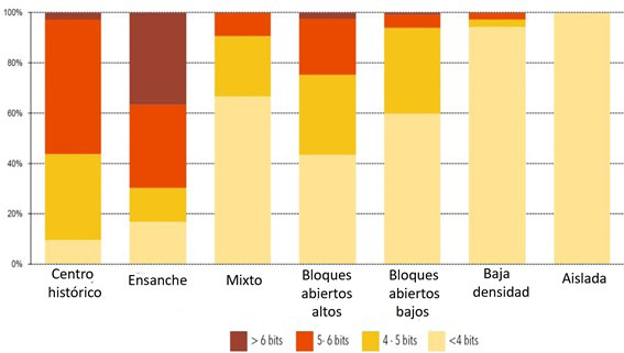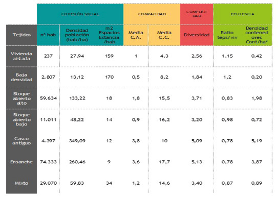 The relationship of complexity with morphology and density of urban fabrics is analyzed. The combination of both concepts defines the proximity to (and between) organized entities. The urban morphologies that include the highest values of urban diversity with a lower consumption of land and energy are also analyzed.
