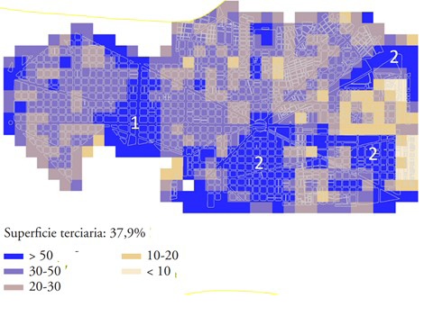 Una malla de referencia permite plasmar los resultados de la medida de la complejidad urbana y homogeneizar la superficie de estudio en áreas iguales para hacer posible el análisis y estudio comparativo de los tejidos urbanos.