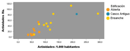 La complejidad medida como diversidad de actividades permite conocer el grado de multifuncionalidad de cada ámbito territorial. Para momentos temporales sucesivos, permite conocer si el grado de organización aumenta o disminuye y en qué partes de la ciudad lo hace.