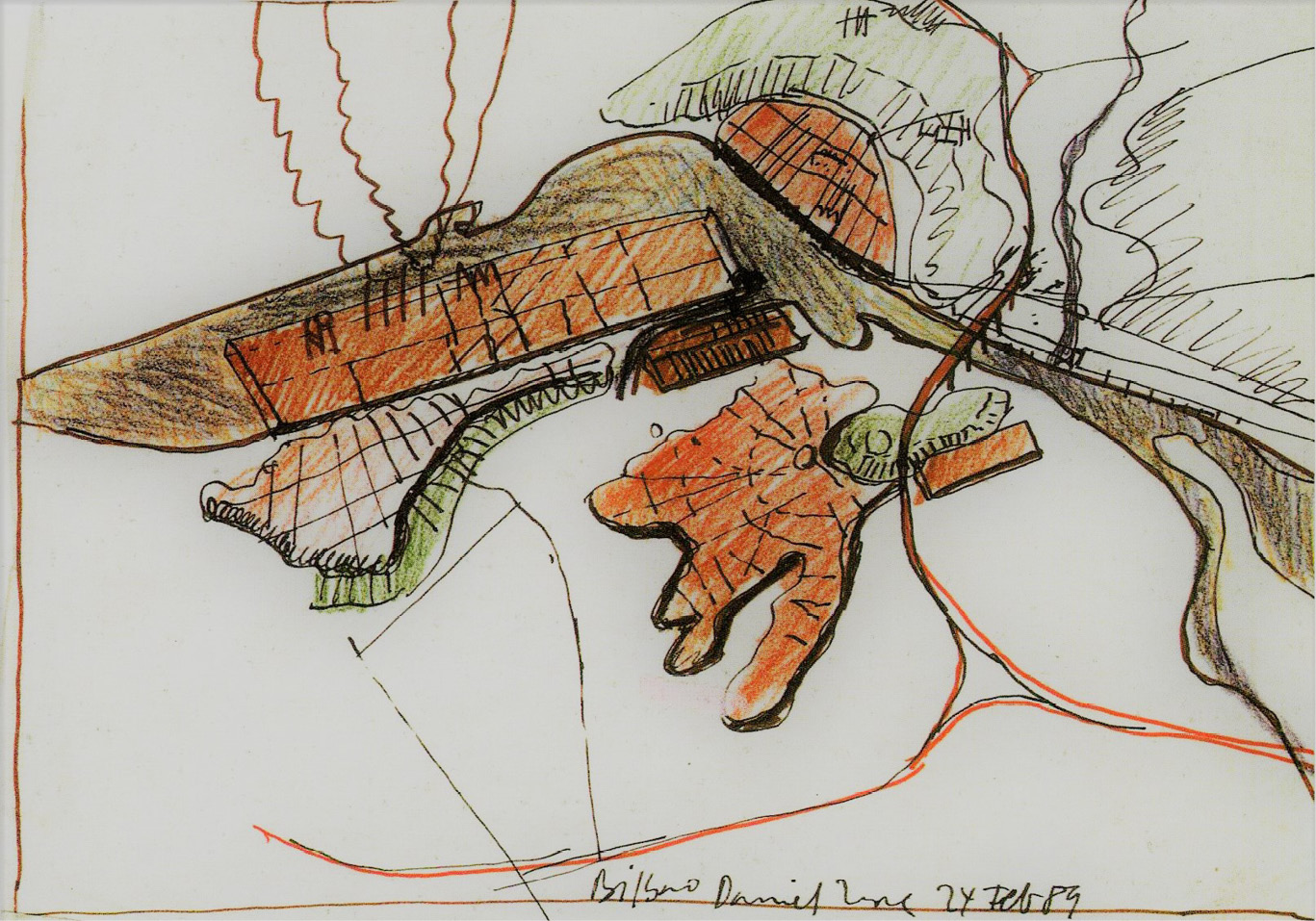 Fuente: Daniel Zarza, arquitecto, 1989. Dibujo a lápiz sobre papel.