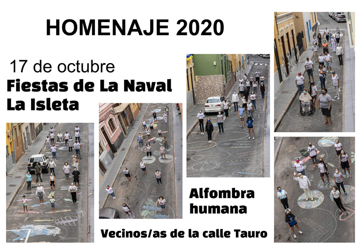 Si la ocupación y desocupación de la casa se puede presentar como una reacción colectiva ante un problema que afecta a la comunidad, a continuación, podemos también mostrar una propuesta colectiva que tiene relación con la unidad social y que se vale igualmente del grupo de WhatsApp como herramienta ya incorporada a la interacción de la calle. Se trata de la elaboración de una alfombra humana propiciada por el contacto creciente entre los vecinos a través del grupo de WhatsApp. En este caso el mismo día 10 de octubre en que se resolvía el conflicto de la okupación, en circunstancias normales, se debería haber estado celebrando en la calle la construcción de una alfombra de sal que, cada cuatro años (en años bisiestos y de olimpiadas), rinde homenaje al paso de la Virgen de La Luz con motivo de las fiestas del barrio. Sin duda se trata de un momento colectivo único, de carácter tradicional y fundamentalmente cultural, en el que los vecinos comparten esfuerzos por conseguir un objetivo común.