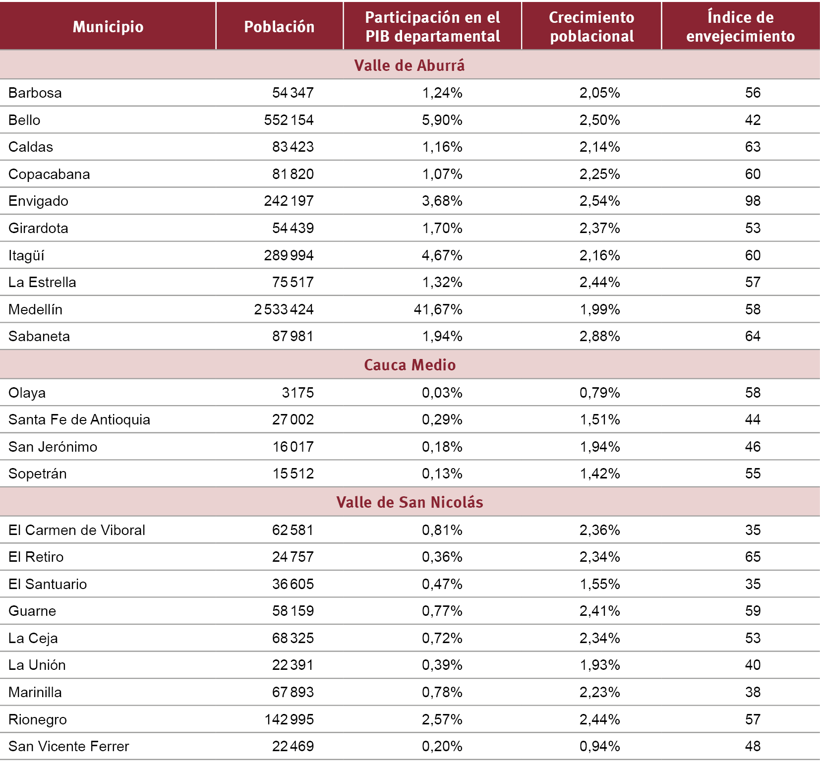 Cámara de Comercio de Medellín (2019): Perfiles socioeconómicos de las subregiones de Antioquia. Medellín, Colombia, Cámara de Comercio de Medellín.