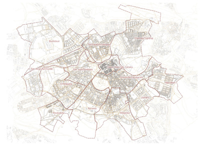 Fig. 3. Límite de los 13 barrios de Pamplona según el Ayuntamiento de Pamplona con fecha 2021