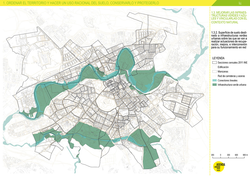 Indicador 1.3.2. Superficie de suelo destinado a infraestructuras verdes urbanas sobre las que se van a realizar actuaciones de recuperación, mejora, e interconexión para su funcionamiento en red