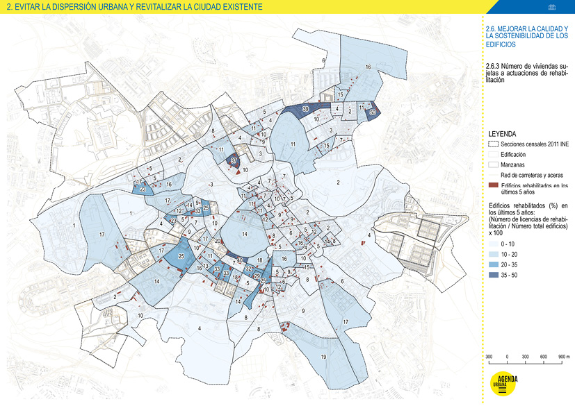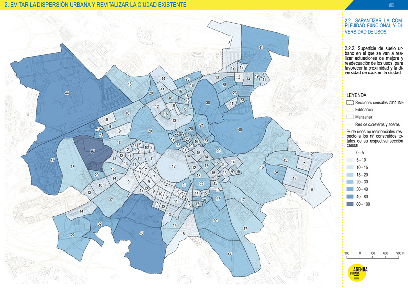 Por ello, el análisis espacial de los indicadores espera, asimismo, ser de utilidad a la hora de identificar las fortalezas y debilidades en las diferentes secciones censales y barrios atendiendo a los objetivos específicos de la AUE.