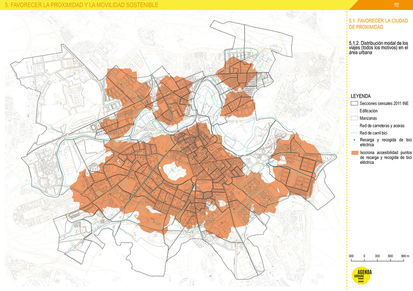 Se observa cómo la ciudad en general es susceptible de mejora en cada ámbito. Además, en este Objetivo Estratégico 5 es muy importante el estudio no solo de las zonas residenciales sino de todo el municipio, ya que el acceso a una movilidad sostenible es trascendental. Con los análisis efectuados se ha podido comprobar que los polígonos industriales se encuentran muy mal conectados, obligando a utilizar el vehículo privado, y sin la posibilidad de recarga eléctrica. Además, la accesibilidad a las grandes zonas verdes de la ciudad también es limitada, especialmente el parque de Aranzadi y las huertas de la Magdalena, y por último y de gran importancia, la accesibilidad al campus de la Universidad de Navarra.