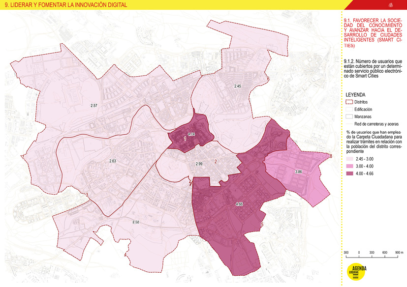 El Objetivo Estratégico 9 (Liderar y fomentar la innovación digital) ha permitido conocer cómo los barrios de Lezkairu, la Milagrosa, Mendillorri y el Casco Antiguo son los que presentan mayor porcentaje de usuarios que han empleado plataformas, aplicaciones, sistemas de información o servicios telemáticos (Carpeta Ciudadana) para la gestión de trámites. No obstante, se observa cómo este no llega ni al 5% de la población de dicho distrito, por lo que, se concluye que la ciudad como conjunto debe establecer diversas políticas de regeneración en este aspecto, a pesar de que algunos barrios presentan mejores números que otros.