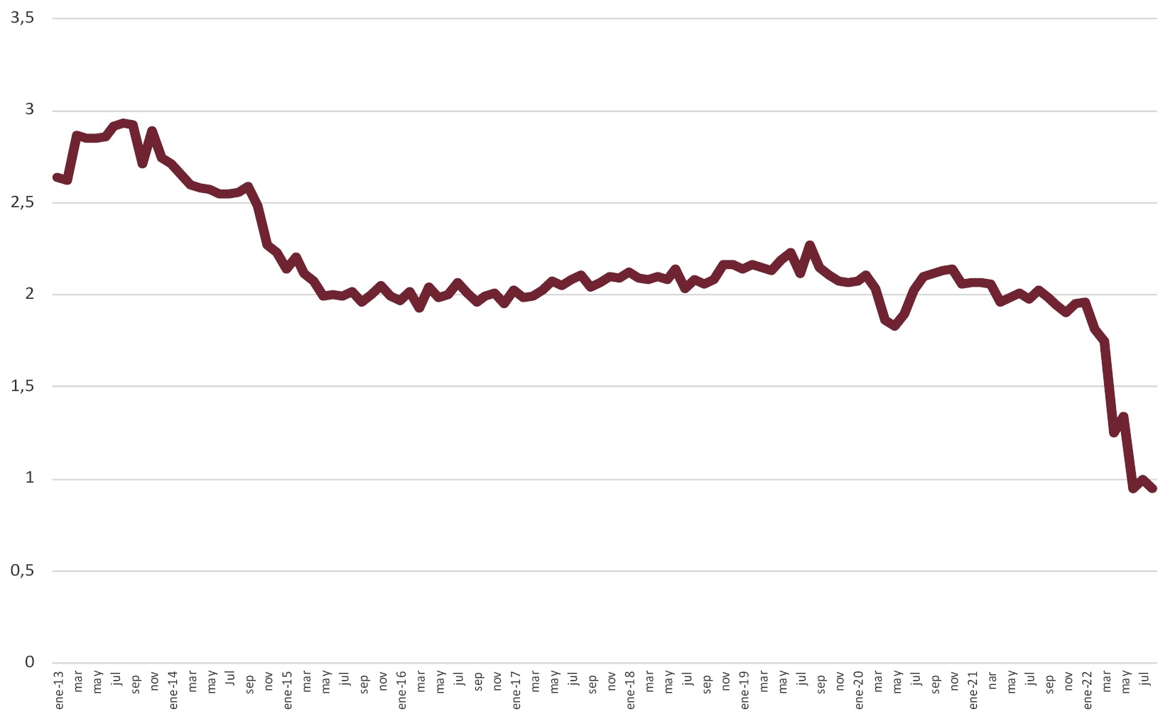 El Consejo de Gobierno del Banco Central Europeo (BCE) elevó los tipos de interés en 0,75 puntos porcentuales en su reunión del 8 de septiembre. Con esa elevación se pasó de aplicar unos tipos de interés acomodaticios a elevar los niveles para llevar la tasa de inflación al 2%, que es el objetivo a medio plazo del BCE. Con la elevación de tipos se pretende moderar la demanda de la economía, ante la elevada inflación, cuya tasa interanual ascendió en la eurozona al 9,1% en el pasado mes de agosto (Rodríguez López, 2022).