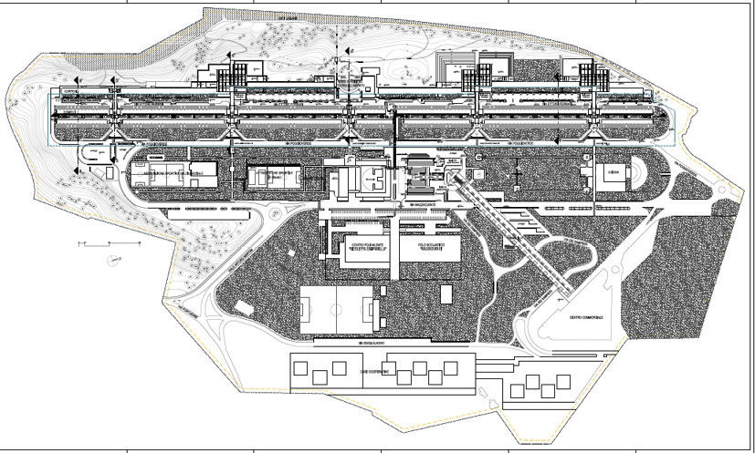 El Corviale nació a raíz de la promulgación de la Ley 167 de 1962 que preveía la creación de un Plan de Construcción Económica y Popular que se implementaría a través del instrumento del Plan Zonal. Corviale es uno de estos, precisamente el número 61 (Solano Rojo & Valero Ramos, 2014). El plan era un sistema residencial que incluía un gran edificio de nueve plantas de aproximadamente un kilómetro de largo, un edificio más bajo paralelo al principal y otro edificio más pequeño colocado a 45 grados con respecto a los otros dos (Fig. 1). Además, el Plan Zonal preveía una rica oferta de servicios ubicados tanto en el interior del edificio principal -en el Piano Libero- como en el exterior colocados en un sistema de franjas paralelas a él. En particular, el Piano Libero debería haber albergado servicios privados, comercios y estudios profesionales, como una verdadera vía urbana a gran altura y cinco grandes habitaciones en condominio destinadas a la gestión del complejo.