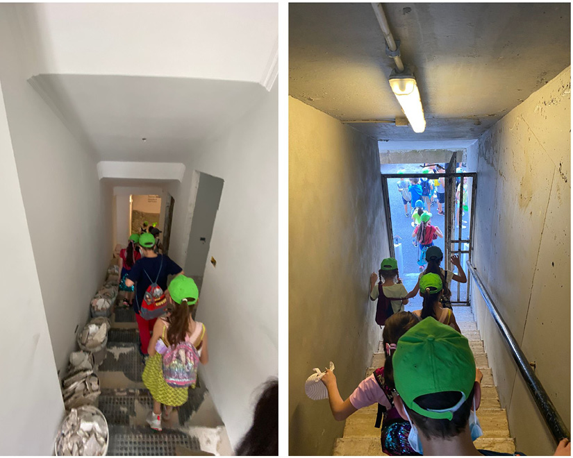 El andar como práctica estética y pedagógica (Careri, 2021) es muy tenido en cuenta por este equipo de arquitectos del que forma parte el conocido Francesco Careri por su aportación teórica sobre el andar como acto cognitivo y creativo capaz de transformar simbólica y físicamente tanto el espacio natural como el antrópico. Se dieron largos paseos desarrollando la potencialidad de la ciudad educadora (Huerta, 2013). Así pues, continuaron avanzando por una de las cinco escaleras monumentales, a las que se suman otras 27 escaleras auxiliares, para gozar de las vistas del paisaje natural circundante. Y por la 6ª galleria di L.go Reduzzi llegaron hasta el Museo de la Memoria (Figs. 1 y 3), ubicado en una de las salas condominales originalmente diseñadas en cada bloque como lugares de convivencia comunitaria, pero ocupados y transformados en viviendas dúplex a pesar de no contar con ventanas practicables. En la creación del museo se respetó la idea de mantener ciertos elementos de las viviendas originales, así como evidenciar el proceso de derribo posterior (Fig. 5).