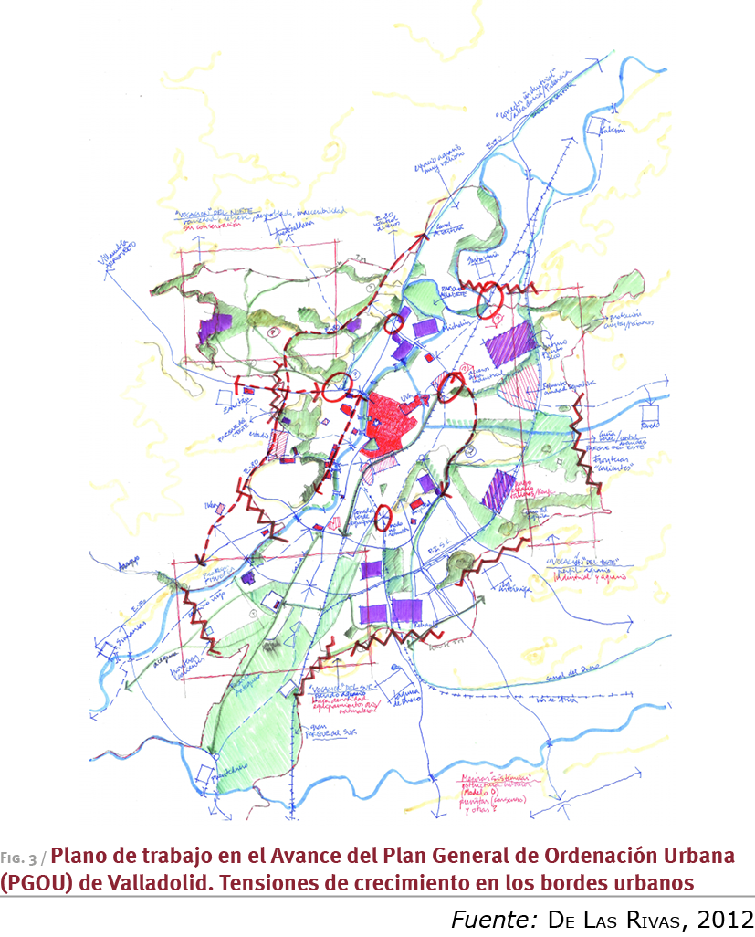 En mi opinión, el debate dirigido a cuestionar el rol del suelo urbanizable, incluso su eliminación, o a redefinir el Plan General desde un perfil más estructurante y estratégico, sin dejar de ser importante, es ineficaz si no cuestiona el modelo que arraiga en el régimen del suelo. El suelo sin urbanizar que se vincule al hacer ciudad ex novo no puede ser moderado por mecanismos restrictivos o de intervención en el mercado, sino que ha de ser radicalmente intervenido. Sólo así la actividad urbanística puede cumplir su función pública (Fig. 3). Otra cosa es la regeneración y transformación de la ciudad existente. En ella se comprueban las rigideces, normativas y disciplinares, a la que está sometido hoy el urbanismo en España, la incapacidad de transformar la ciudad existente al ritmo deseado por la dificultad que tiene el sector privado para promover actuaciones integradas de regeneración urbana sin subvenciones, en procesos que son de gestión complicada y que se eluden si no generan plusvalías relevantes. Como se comprueba hoy en Europa, y también en casos de éxito en España, la escala de la intervención ha de permitir una nueva imaginación de lo urbano, con acciones alejadas de la perspectiva restrictiva. Ello no significa destruir lo existente sino fomentar una combinación inteligente de la recuperación y de la creación de ciudad13.
