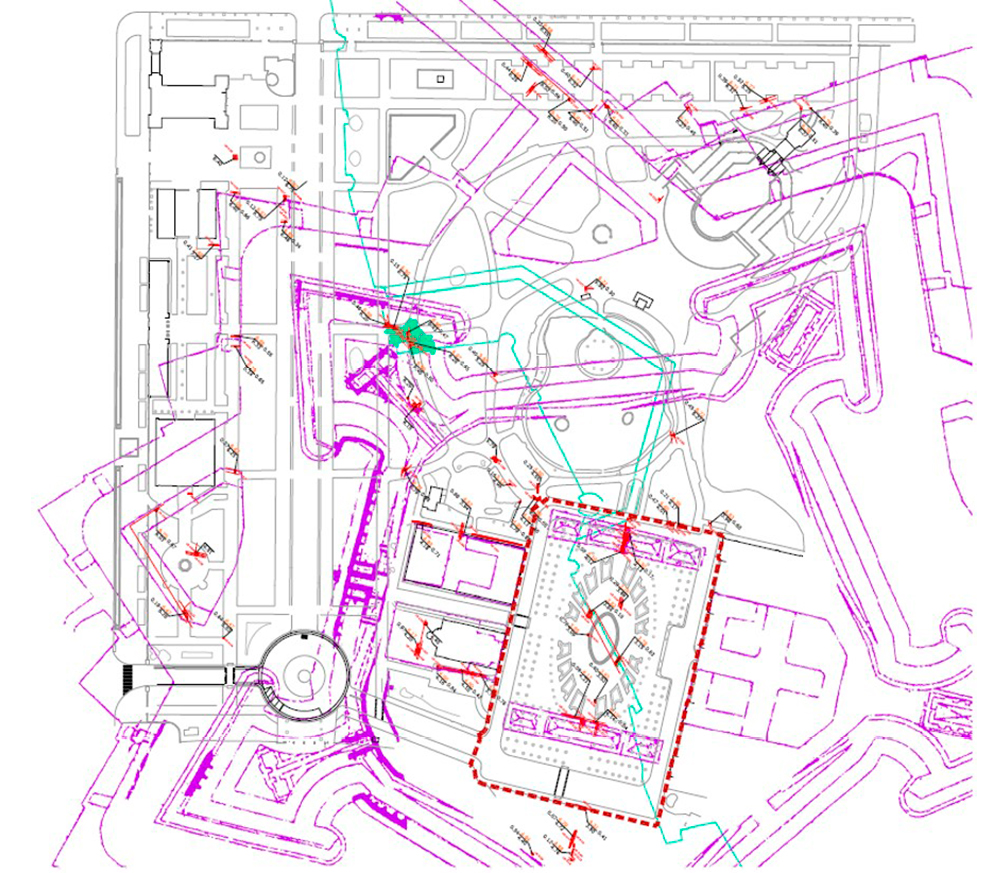 El desarrollo del proyecto partió de la formación de un equipo multidisciplinar, compuesto por arquitectos, paisajistas, ingenieros y especialistas en patrimonio, que trabajaron juntamente con los promotores y gestores del proyecto. Los estudios técnicos, arqueológicos e históricos se llevaron a cabo en una primera fase de forma paralela, integrándose después sus resultados (Fig.4).