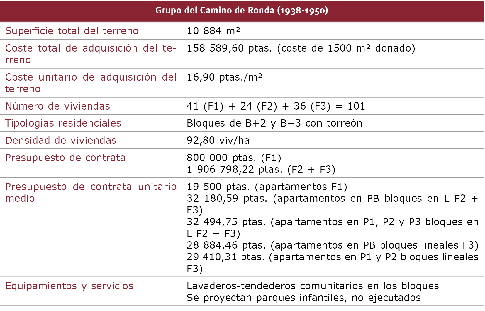 Fig. 10 / Tabla resumen del grupo del Camino de Ronda (F: fase de construcción)